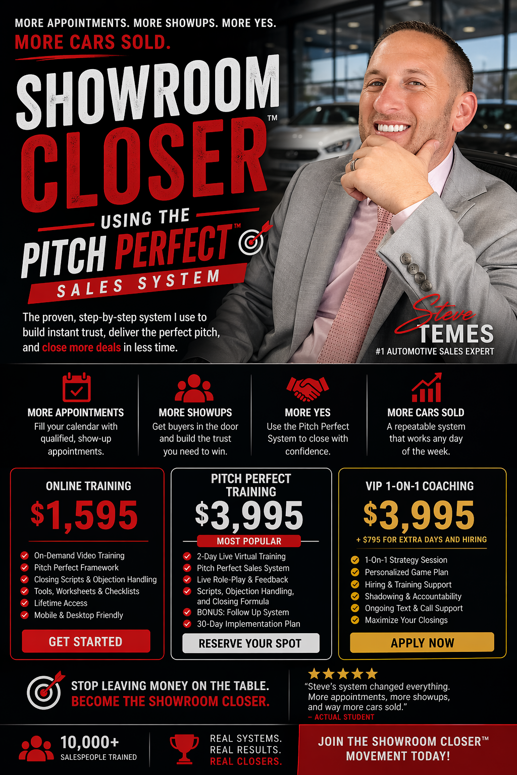 The Showroom Closer, Steve Temes new Pitch Perfect Training is about to go live.